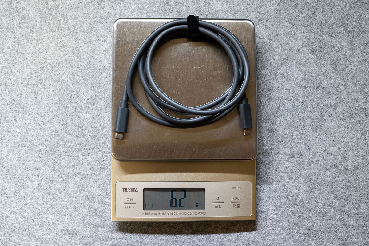 USBケーブル(C to C)は結構太めでしっかりした作り。