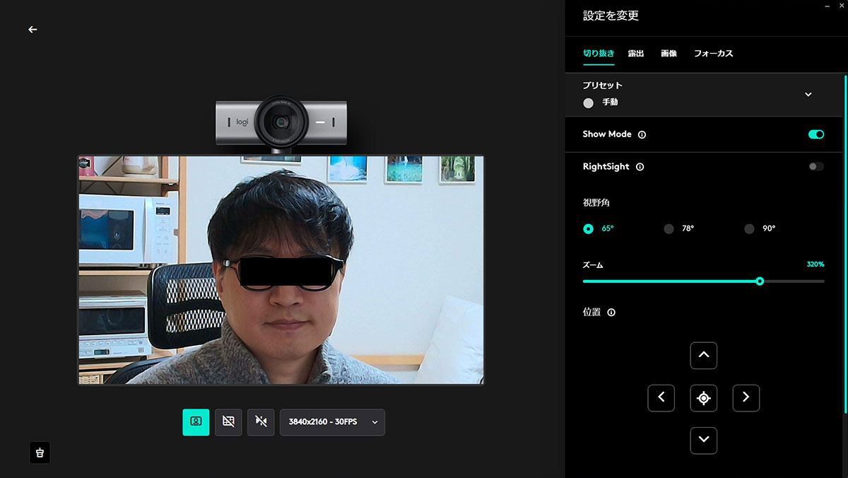 「ロジクール BRIO 700(C1100)」は、65°・78°・90°の3段階画角切り替えとデジタルズーム(最大4倍)に対応。