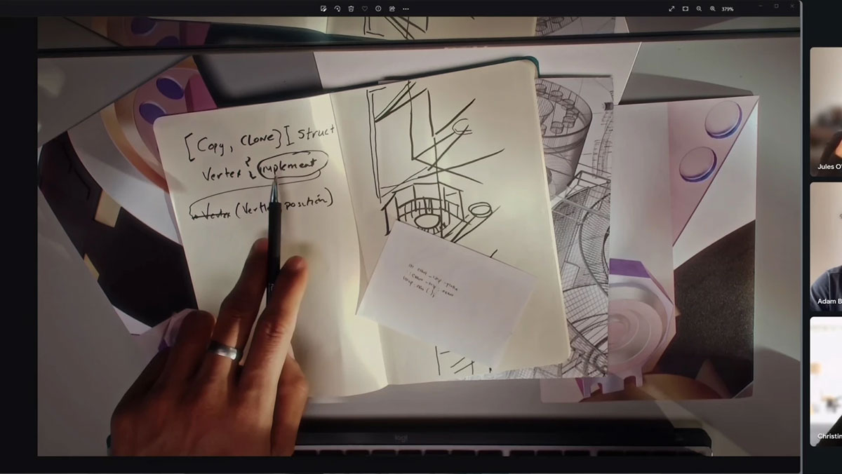 カメラを90度ほど前に倒すと映像を自動反転してくれて、デスクの資料や物を見せるのに便利です。