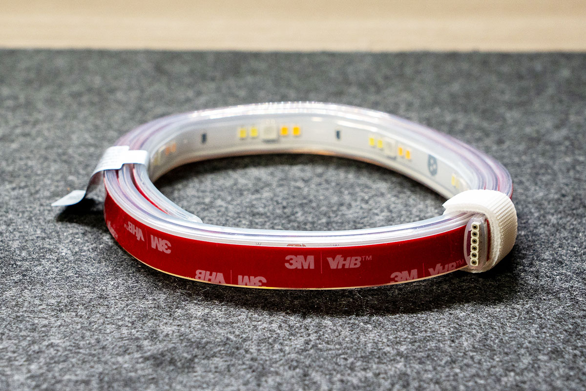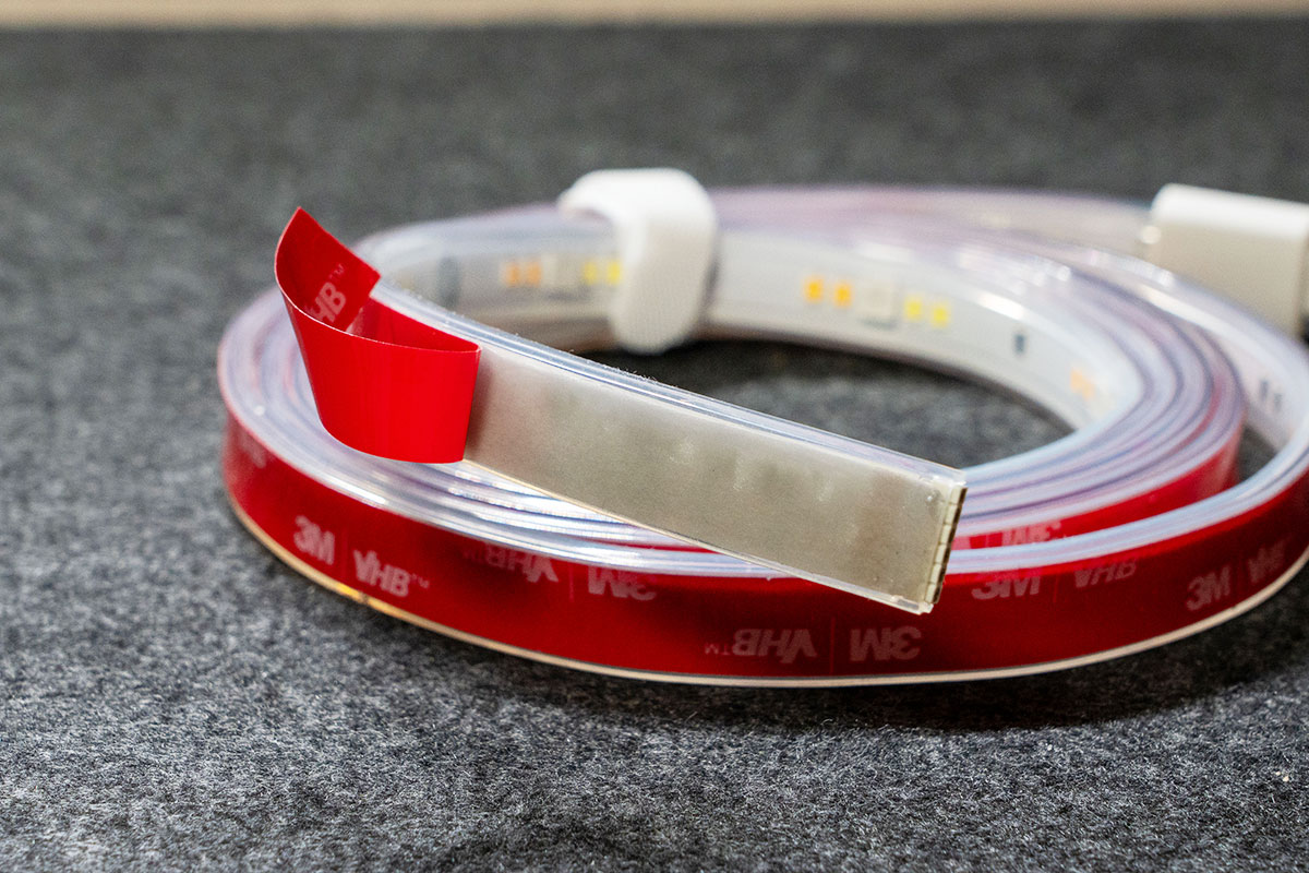 Nanoleaf LEDテープライトは、裏面の粘着テープを剝がして貼るだけで使えるシンプル構造。
