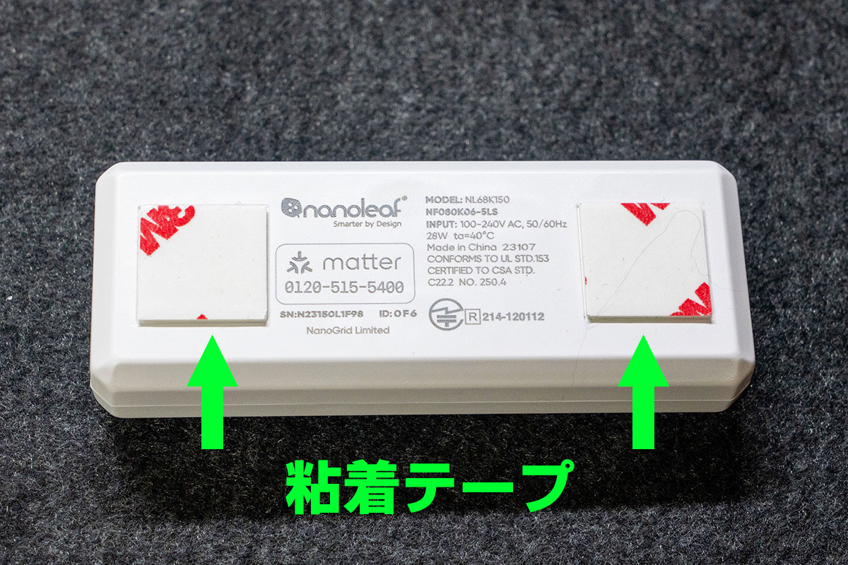 Nanoleaf LEDテープライトは粘着テープが最初からあり、シールを剥がすだけで貼り付け可能です。