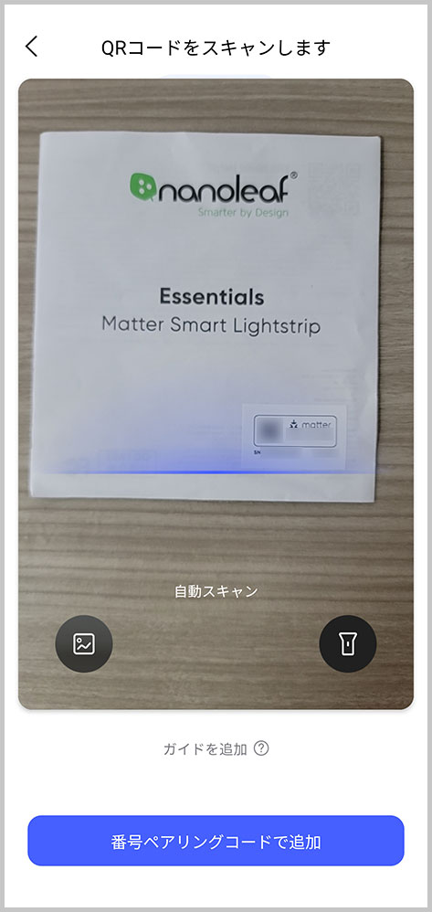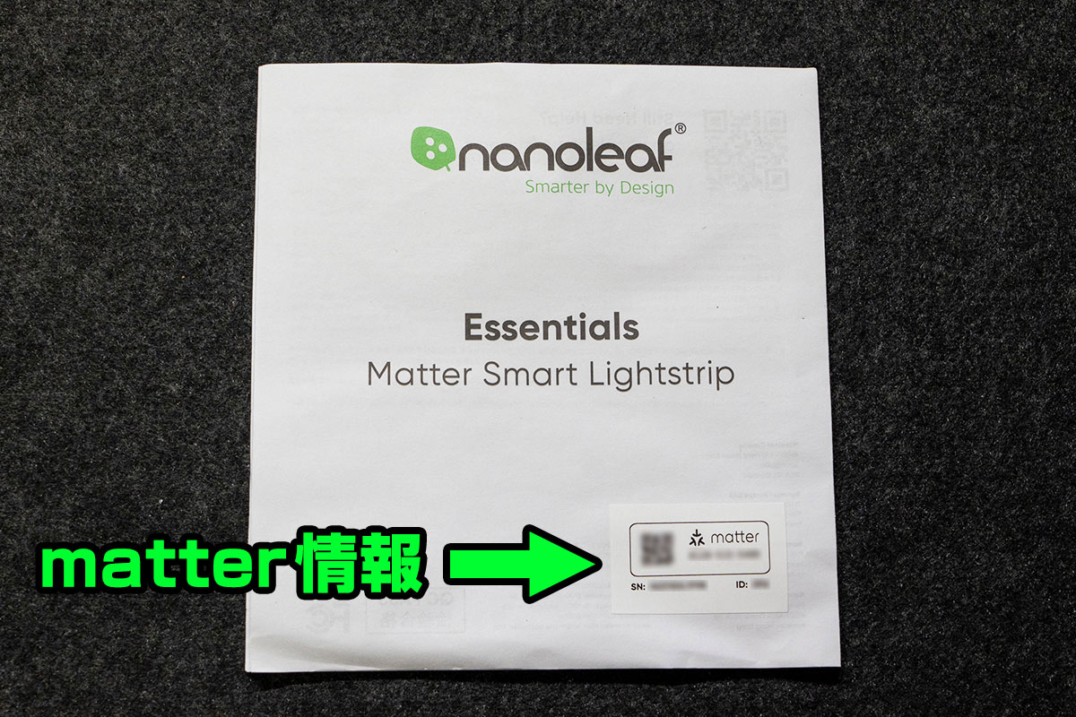 このQRコードはmatter情報で、ハブやスマートホーム(Google Home、Apple Kit、Alexaなど)とmatter接続させるのに必須になってきます。