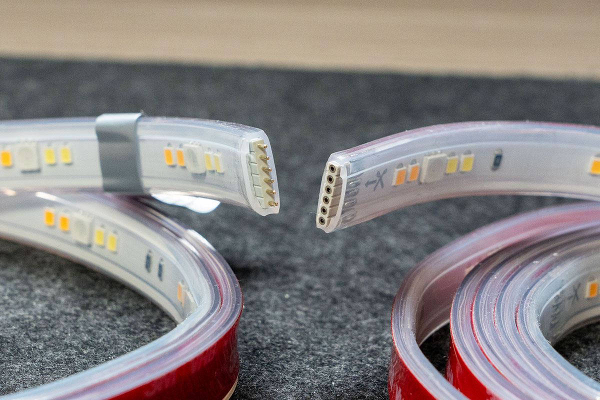 LEDテープライト同士の接続はピンを差すだけで簡単。
