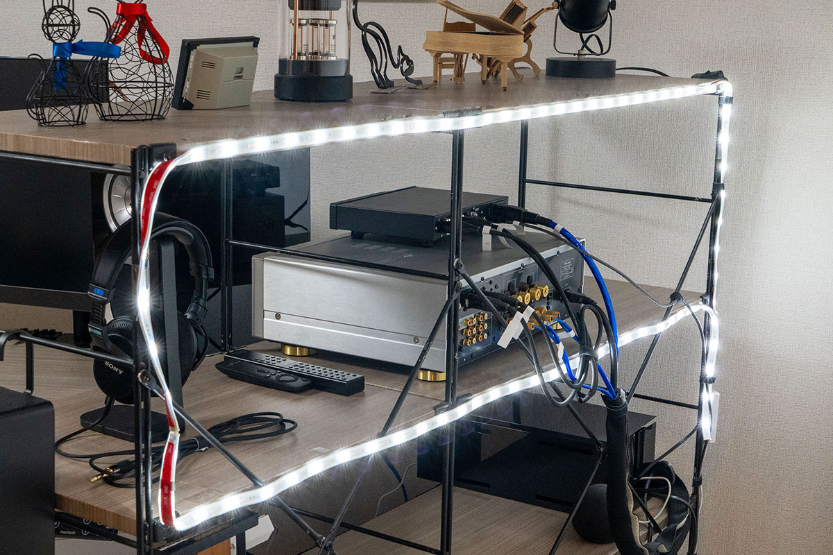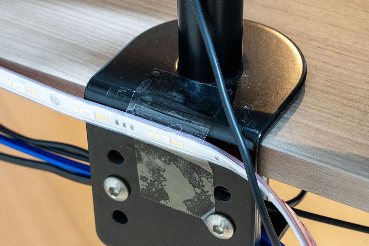 私はデスクの機材入れ替え・模様替えなどで、わりと頻繁にLEDテープライトを剥がす必要があるので、LEDテープライトはガムテープで設置するようにしています。