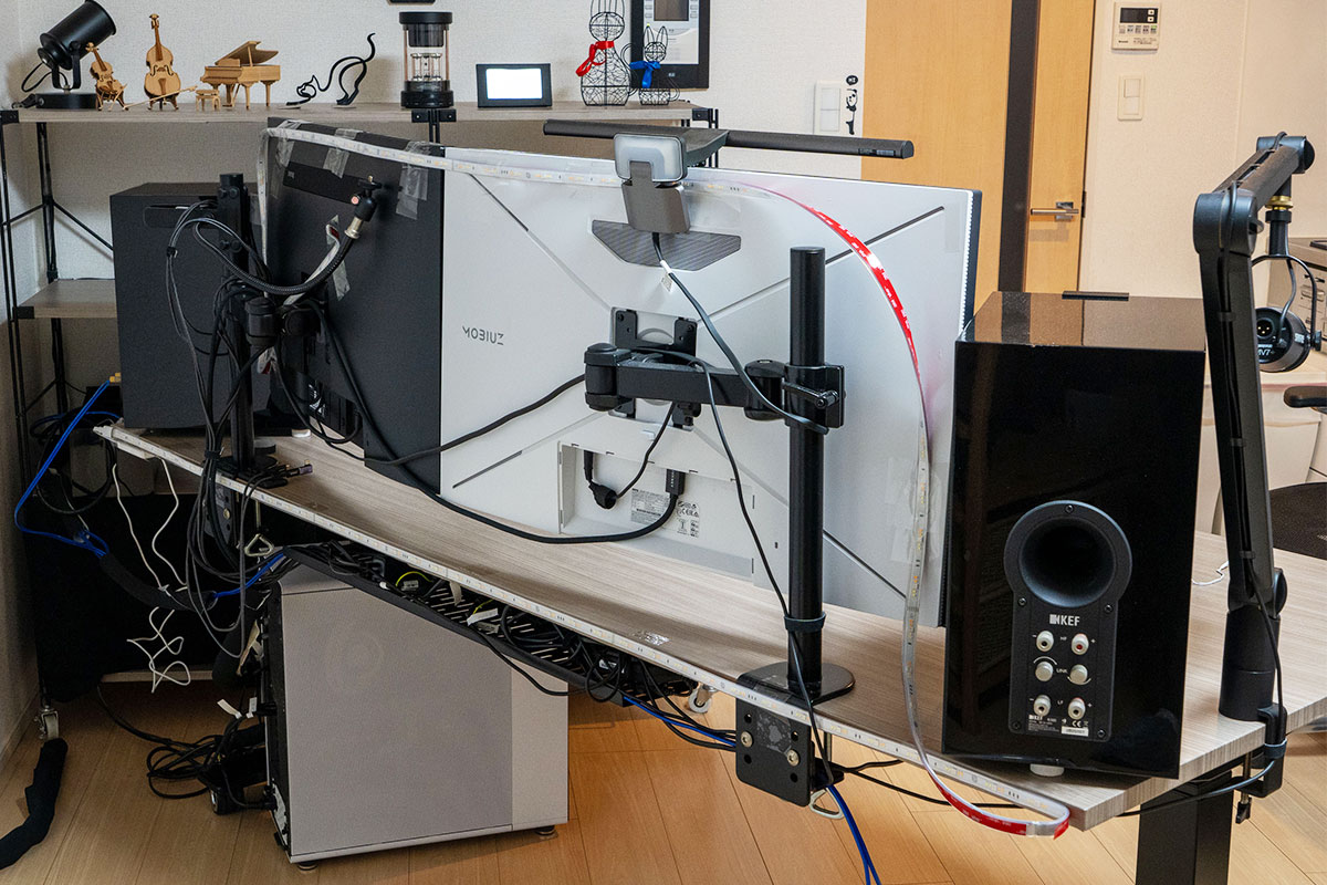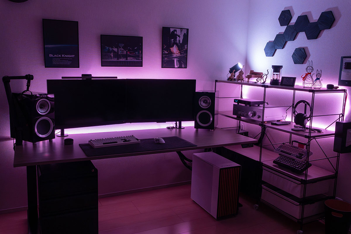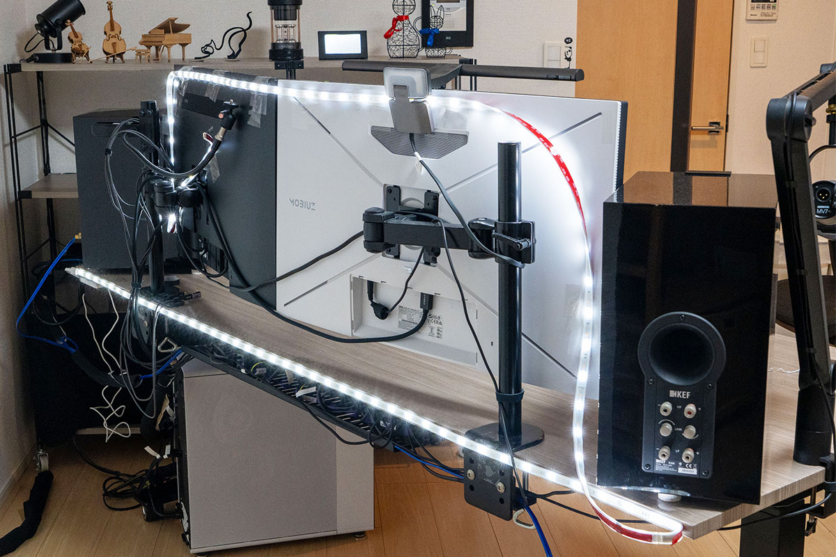 デスク周りの背面側にNanoleaf LEDテープライトを貼っていきます。