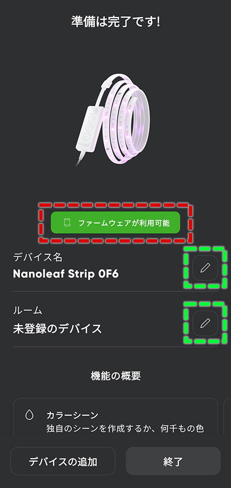 Nanoleaf LEDテープライトはNanoleafアプリと紐付けることで幅広い色を表現でき、アプリならではの機能を使えるようになります。