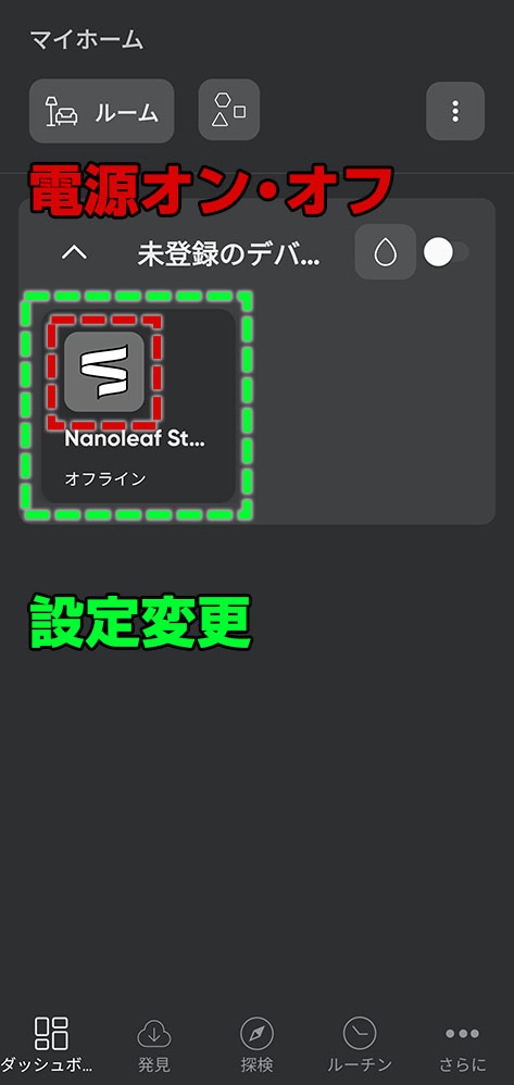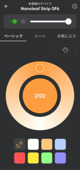 物理コントローラーだけだと色数が少なくて機能もほとんど使えないので、Nanoleafアプリと紐付けるのを絶対オススメします。